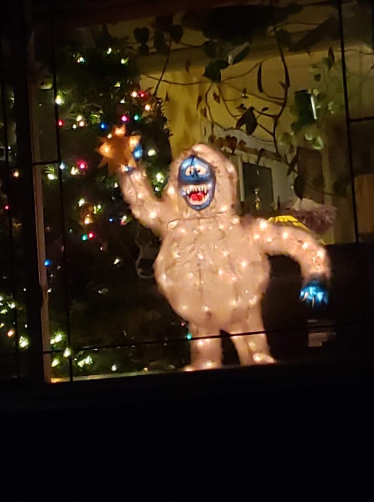 But now I see. I have learned that our circumstances do not define us, and that growing up in poverty did not make me less worthy. The last few years especially, I have been practicing gratefulness rather than longing. Simplicity has replaced striving, and Christmas has become a time when my family does our favorite things, and not what popular culture tells us we should. Our Christmas tree is decorated with a mayhem of ornaments that were made by me and my children, and out front window is graced by a ridiculous lit up Bumble (see the pic, he is a character from a holiday cartoon from my childhood).